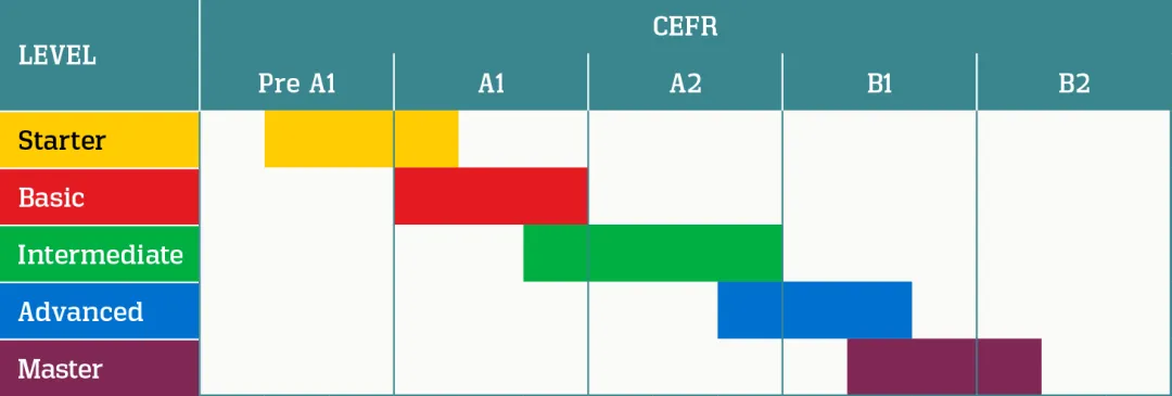 教材对标CEFR(欧洲共同语言参考标准,The Common European Framework of Reference for Languages),分为五个级别共15本书,对应CEFR的PreA1-Lower B2级别,满足小学各阶段学习需求。教师和家长可根据学生的实际水平,灵活选取相应难度的教材。