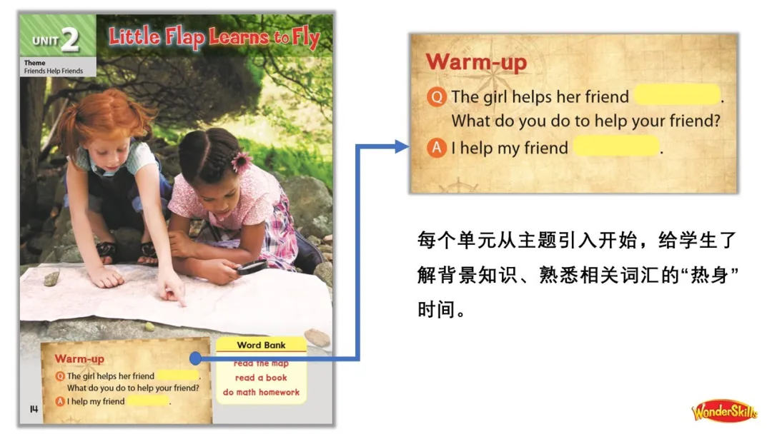 Wonderskills设计了专门针对英语学习者的教学框架,更适合中国学生使用。每个单元都包含以下六大基本环节: